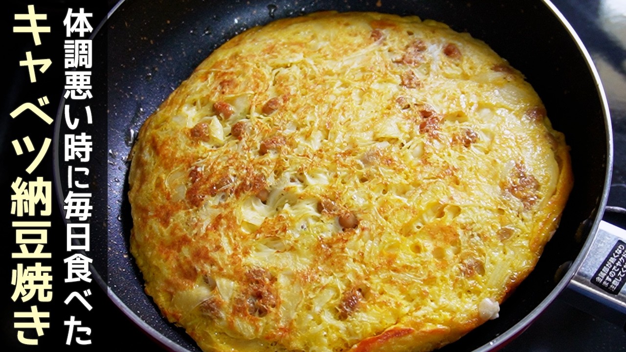 「キャベツ納豆焼き」市販のキャベツで簡単・混ぜるだけ!ふんわりと美味しい卵焼き!節約レシピ・市販の千切りキャベツアレンジ・納豆卵消費レシピ・粉を使わないお好み焼き作り方 2026.04.23 満腹レシピ yunbonbo 夜ごはん思いつかないを解決するサイト