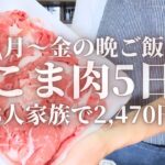 【節約レシピ】3人家族平日5日間2,470円で作る豚こま肉晩ごはん。