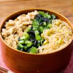 「厚揚げそぼろの三色弁当」レシピと作り方を動画でご紹介します。甘辛く炒めた厚揚げそぼろ、ごま油香る小松菜の海苔和え、さっぱりとしたもやしナムルの3種を組み合わせたお弁当です。それぞれ短時間で仕上がり、フライパンとレンジだけで作れるのが魅力ですよ。
