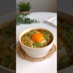 ⑤③に④をかけて卵黄・ネギをかけて完成ꕤ︎︎·͜·