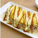 (6)半分に折りたたみ、そのままひっくり返すようにして器に盛る。お好みでソースやマヨネーズをかける。